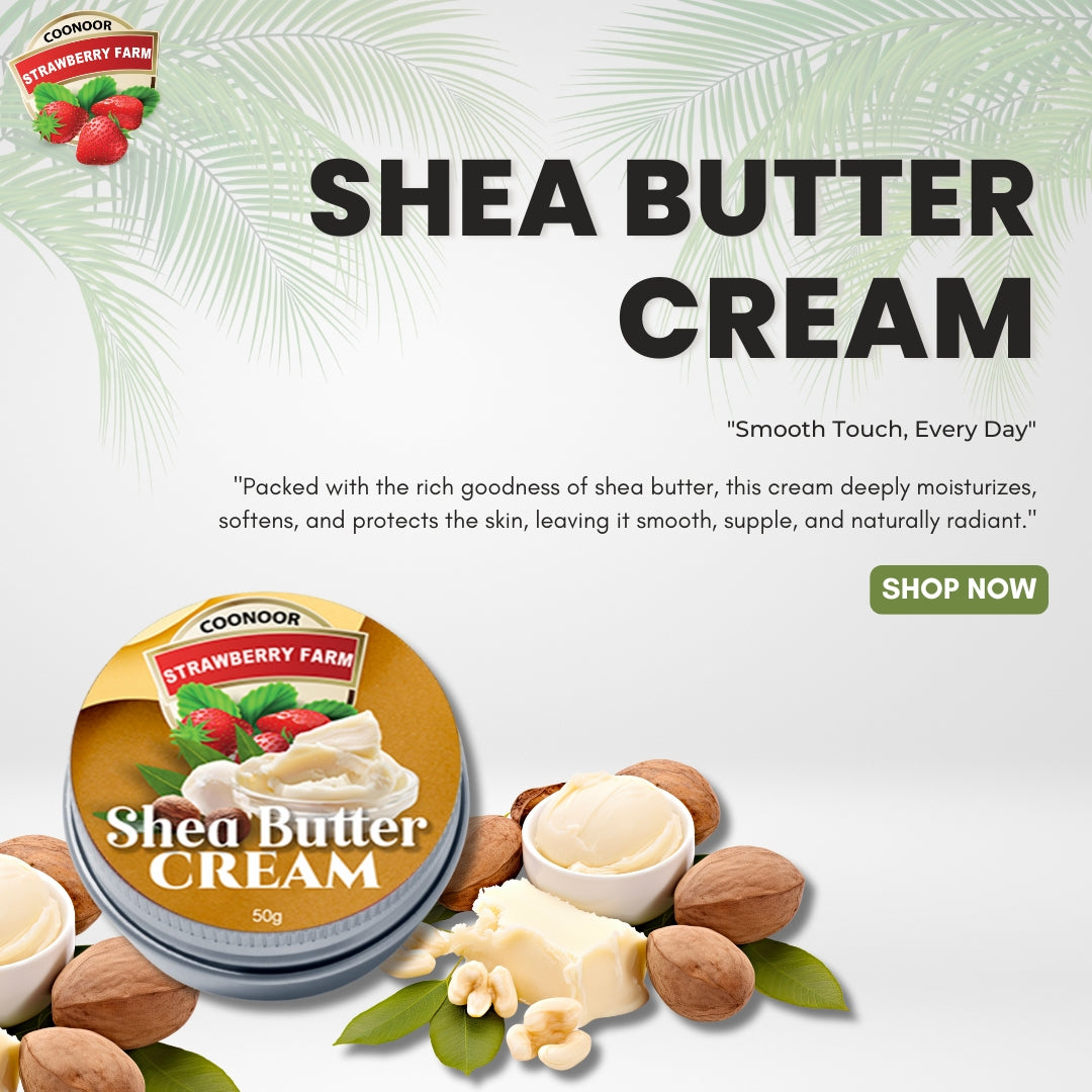 Nourish and pamper your skin with our Shea Butter Cream, packed with the rich goodness of natural shea butter. This deeply moisturizing cream is designed to hydrate, soften, and protect the skin, leaving it smooth, supple, and naturally radiant. Its creamy yet non-greasy formula provides long-lasting moisture, helping to restore dry, rough, and tired skin. Perfect for daily use, it supports healthy-looking skin by locking in moisture and improving overall skin texture.